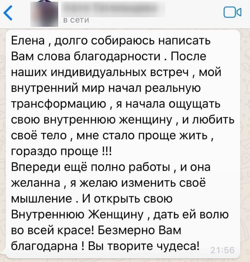 Мы начинаем работать. При покупке пакета консультаций каждая встреча длится 1,5 часа, я даю вам домашние здания, вы можете писать мне между сессиями и задавать вопросы по WhatsApp. График встреч определяем индивидуально, от 1-2 раза в неделю до 1 раза в месяц.